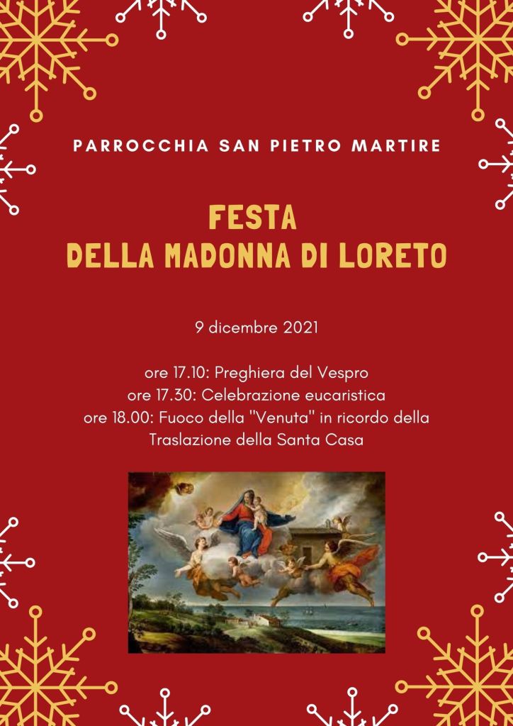 Giovedì 9 dicembre presso la Chiesa di San Pietro Martire ci sarà il Fogaro’ della venuta per celebrare la tradizione del trasporto della Santa Casa a Loreto.
